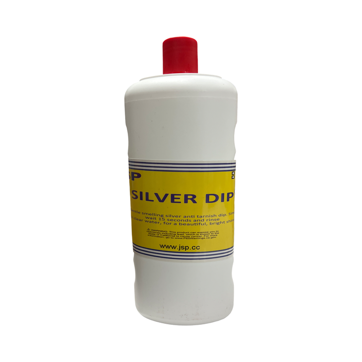 JSP Silver Dip Cleaner. Gentle smelling silver anti tarnish dip. Simply dip silver, wait 15 seconds and rinse in clear water, for a beautiful, bright shine. SDS.