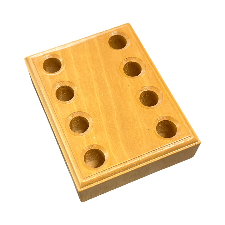Made of hardwood and polished to a high gloss finish, this 3 plier holder makes a great bench aid. Holes are beveled for easy in-out handling. Every bench can use a holder like this. 4" x 3" x 1".